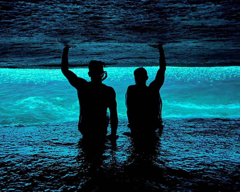E na 4ª parada chegamos na Gruta do Acaiá. Essa caverna impressionante é cercada por águas cristalinas e rochas imponentes. Ao adentrar a Gruta, você será recebido por um ambiente misterioso e fascinante. O interior da caverna é bem estreito, e por esse motivo o uso de capacete esportivo é fundamental para sua segurança. A beleza das formações rochosas é ampliada pelas águas cristalinas que refletem a luz, criando um espetáculo visual único. Essa diversidade biológica torna a experiência de explorar o local ainda mais especial, permitindo que você aprecie a interação entre o mundo subterrâneo e o mar.